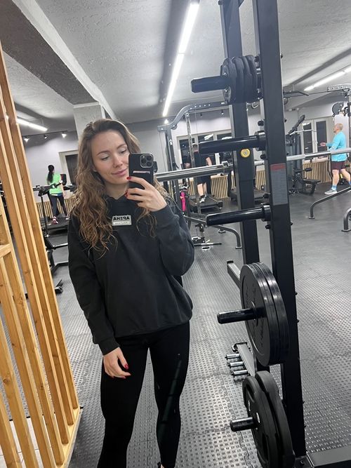 I’m Anastasia, I’m a fitness trainer also I’m a teacher for children to the swimming pool f